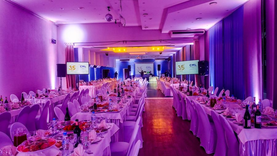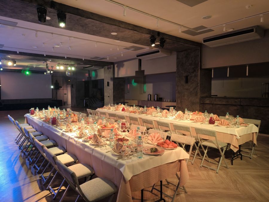 Зал оснащён профессиональной звуковой и световой аппаратурой Hi-Fi класса, стробоскопом и зеркальным шаром, что позволяет создать нужную атмосферу для любого формата мероприятия.