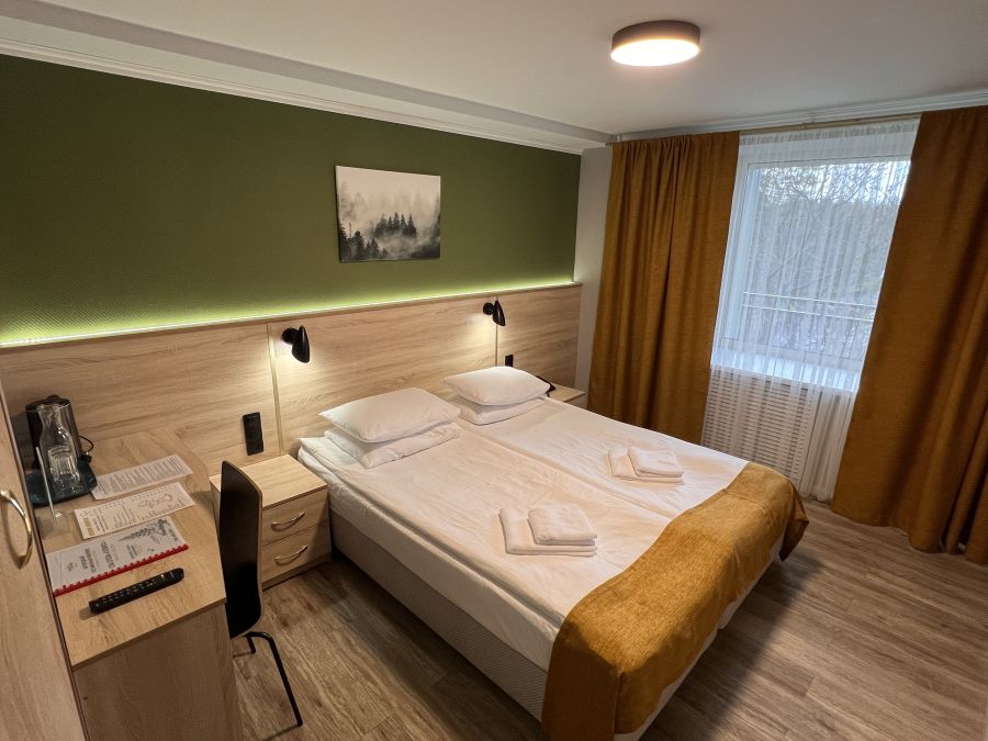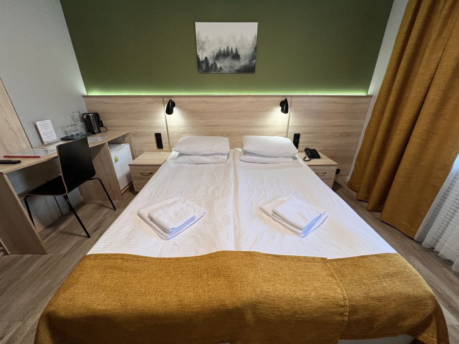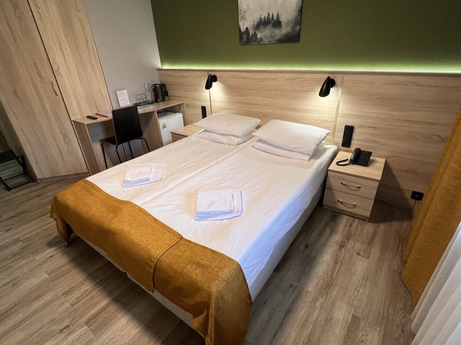 Номер с продуманной эргономикой, площадью 15 м². с видом на внутреннюю территорию Отеля (паркинг), расположены на 4, 5, 6, 9 и 10 этажах.