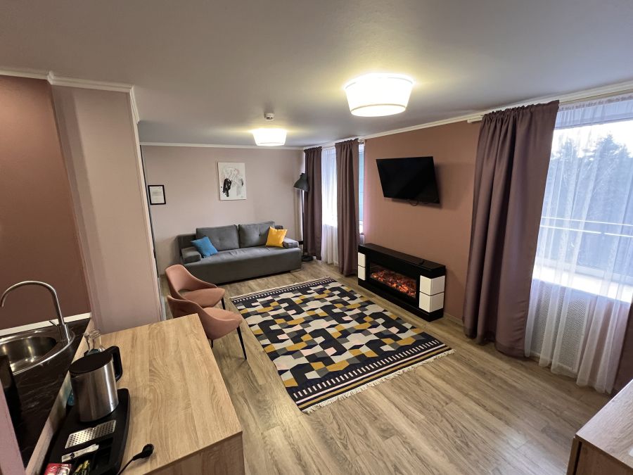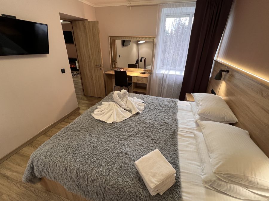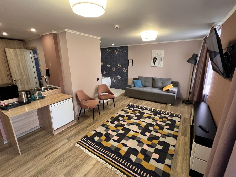 Просторные и современные двухкомнатные номера, имеют улучшенную звукоизоляцию и расположены на 7, 8 или 10 этаже, особенностью которых является тропический душ и отдельная зона с гидромассажной ванной (аэромассаж, хромотерапия).